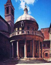 表現主義建築に限りない愛着を抱く、私たち建築少女研究会は、 タウトの傑作、ガラスのパヴィリオンの少女も想定しています。 (が、彼女の画像データを復旧できるかどうか、不明…。) アインシュタイン塔少女の親友という設定です。 ガラスのパヴィリオンは、一般的には、 プロポーションが悪く、不細工で、悪趣味だ、などという 評価を受けているようです。 が、そうでしょうか? 私たちは、そうは考えません。 むしろ、ガラスの透明性と、色彩の乱舞に彩どられ、 そしてパイヴィリオン建築という、その宿命的刹那性 ともあいまって、 建築少女のコンセプトをもっともよく体現している 美しい作品だと、そう思うのです。 この建物を、よぉく見てください。 何かを思い出しませんか? そう、あの、ルネサンス建築の珠玉たる ブラマンテのテンピエットそのものではありませんか! タウトのガラスのパヴィリオンを不細工だというのは、 ブラマンテの傑作を不細工だというのに等しい、 審美眼の欠如を意味しているのです!